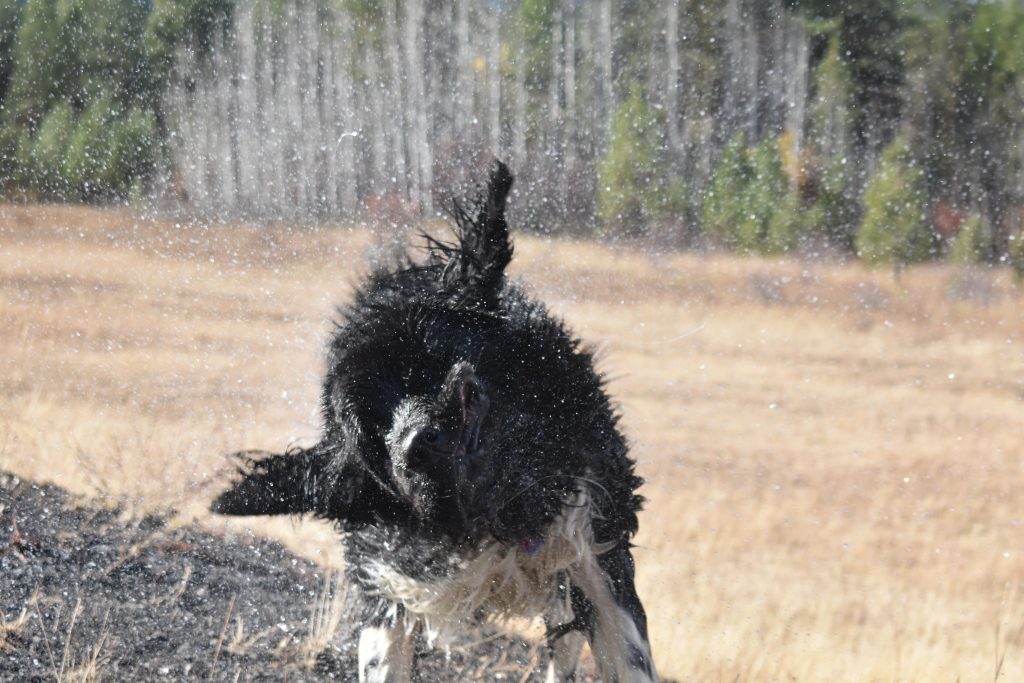 The Wonderful Wallow! The wonderful wallow itself is based on an elk wallow that was in the mountain meadow where we live. It was a muddy patch surrounded by meadow grass that was made mucky by several natural springs that sent water seeping out of the ground. The elk loved to roll in the mud and scratch their itches. My grandfather, Delbert, eventually dug the area out and built our pond, which the elk (and our dogs) love! The pond was the one location that our dogs would go by themselves. They always waited for us to take them on a walk, unless they got super-hot. If that happened, both Shamu and Nessie were brave enough to lumber across the meadow to the pond for a dip in the cool and muddy water. This love for the pond inspired Phooey Kerflooey vs The Wonderful Wallow!