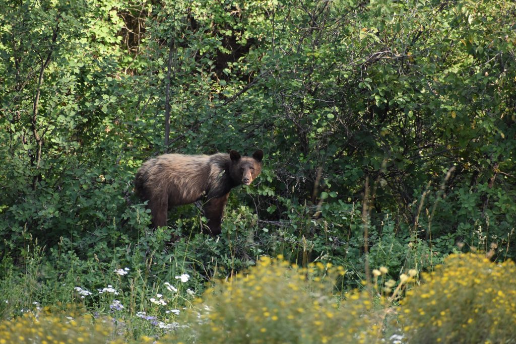 Bluff Charge! My grandma Autumn really did have a bear bluff charge her one day when she was out for a walk. A bluff charge is where a bear charges toward you and then stops, pounding the ground with their feet and maybe giving a stern huff to encourage you to go away. This happened when my grandmother saw a dead elk and walked over to it to investigate. That bear thought she was going to steal his dinner and warned her away. Autumn and my great aunt Lily also had the experience of having their dogs chase a bear, calling the dogs back, and then getting both the dogs and the bear running back to them! Don’t worry. Once that bear got those dogs zipping in the proper direction, he lumbered back into the forest.
